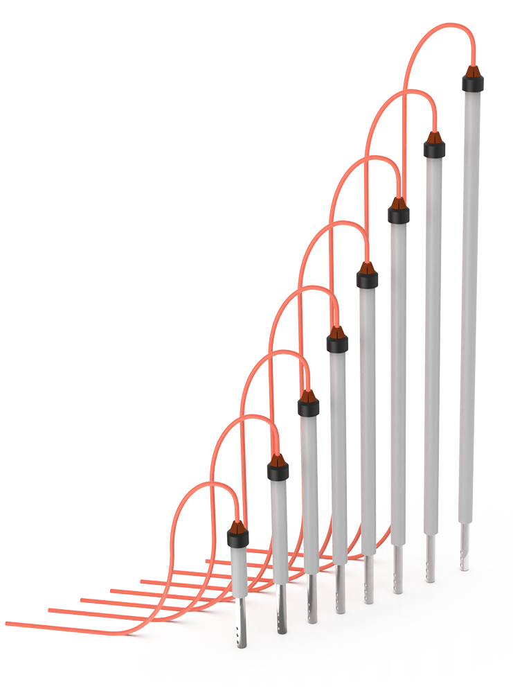 Le sonde sono disponibili in diverse lunghezze, da 5 centimetri fino ad 1 metro ed oltre, per consentire di monitorare i parametri del suolo a tutte le profondità raggiunte dagli apparati radicali delle piante.